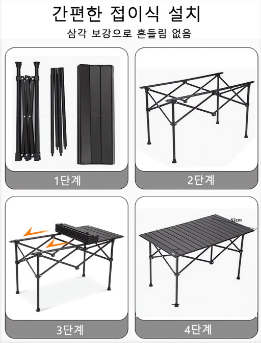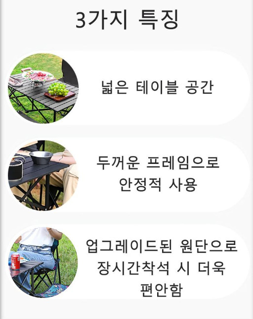 - 캠핑용 접이식 의자/테이블: 수납과 이동 편의성 강조
